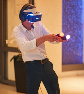Необычный, но очень крутой аттракцион, который принимается на «ура!» гостями любой возрастной категории. Подходит для любой компании, т.к. можно побывать и в роли зрителя, и в роли участника. В стоимость входит: телевизор, установка виртуальной реальность, датчики, работа оператора. Доставка и установка включены в стоимость. Возможна оплата, как наличными, так и безналом.