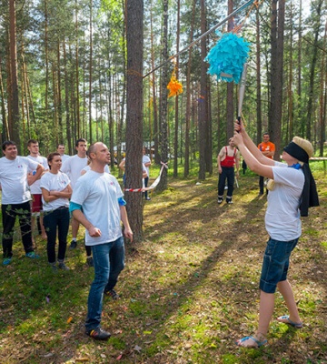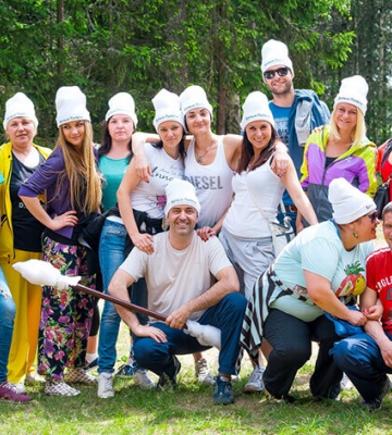 Для этого корпоратива было выбрано очень колоритное место – рядом с партизанским лагерем, на свежем воздухе в сосновом лесу, вдалеке от городской суеты. Участники были в основном мужчины, и все командные испытания были специально подобраны для них. Также было решено провести творческий конкурс, который стал для всех приятной неожиданностью, т.к. каждый смог проявить свои креативные способности. Вкусная еда, приготовленная на открытом огне, стала прекрасным дополнением к не менее приятному дню.