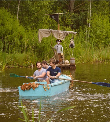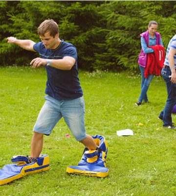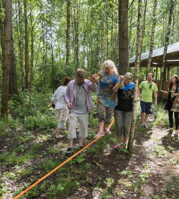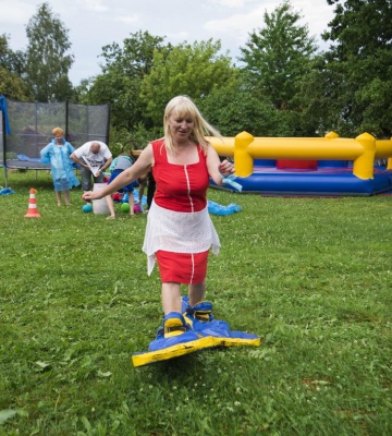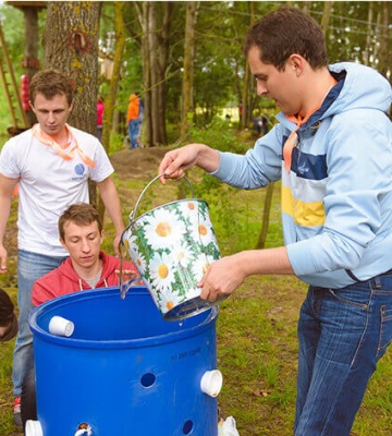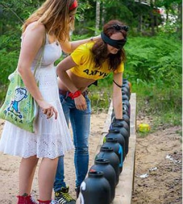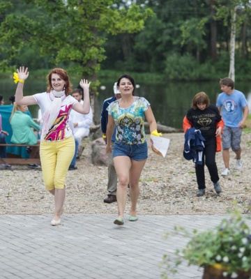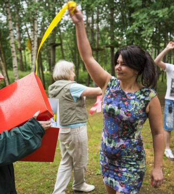 Особенность данного корпоратива заключалась в том, что участниками были в основном пожилые люди, а также еще одним нюансом для нас стала дождливая погода в день мероприятия. Дождь лил практически не переставая, но то не помешало нам организовать и провести тимбилдиг. Участники соревновались между собой в разных препятствиях, плавали на лодке по озеру в поисках подсказок, стреляли из луков и арбалетов, летали на тарзанке над водой и делали еще много всего. Ничто не смогло стереть улыбки и отличное настроение коллектива. К вечеру дождь прекратился, а мы еще долго танцевали и зажигали под живую музыку.
