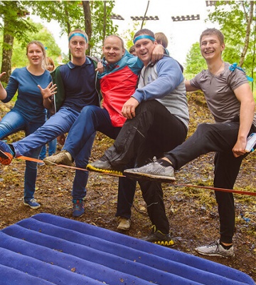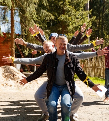 В первую очередь хочется отметить место, в котором нам посчастливилось провести этот корпоратив – это отличная усадьба недалеко от города, где природа и площадка позволяет провести отличный тимбилдинг! В нашем распоряжении был веревочный городок, озеро и лодки, большие поляны с газонами, лес и тарзанка! Мы создавали уникальный сценарий, разбивали гостей на команды, играли в «Последний Герой», лазертаг, и собирали большой пазл, созданный специально для компании!