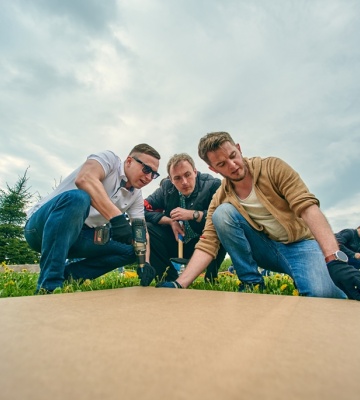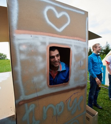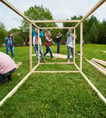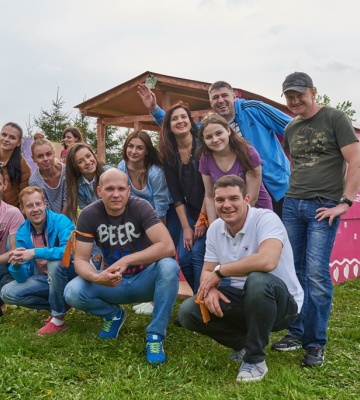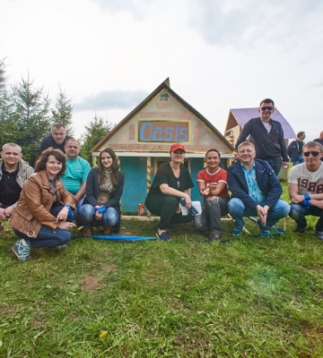 Это был очень крутой корпоратив разделенный на 2 части: первая – классический тимбилдинг с делением на команды и прохождением полосы препятствий, а вторая часть – строительство домиков в натуральную величину из настоящих стройматериалов. Мы сильно заморочились, чтобы всем участникам было действительно интересно: кто-то занимался проектированием, кто-то пилил и стругал доски, кто-то красил и занимался декорированием готового домика. Получилось 6 очень разных по стилю, но все в великолепном исполнении, домиков. «Сочный» - это действительно место, где живет любовь!