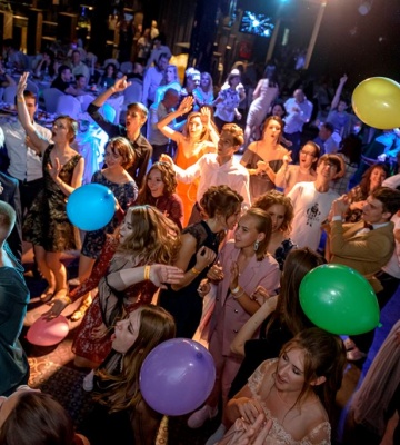 При организации этого выпускного нужно было учесть все пожелания не только выпускников, но и родителей и администрации. Благодаря слаженной работе каждого участника удалось создать и воплотить в жизнь красивый и интересный выпускной. Насыщенная шоу программа, знаменитая кавер-группа с популярными хитами, веселый ведущий и главное, сами выпускники – вот составляющие успеха идеального выпускного вечера.